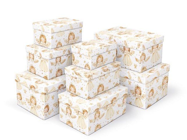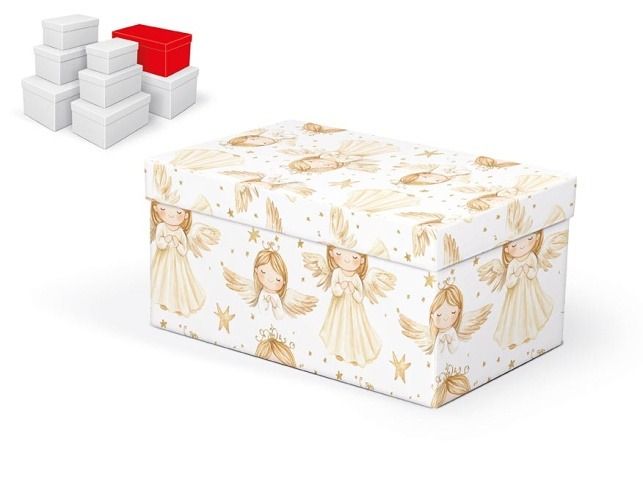 Vánoční dárková krabice o rozměrech 26 x 17 x 13 cm Vánoční dárková krabice s motivem andílků a zlatých hvězdiček přináší jednoduchý a přitom efektní způsob, jak dárek zabalit. Nemusíte řešit papír ani stuhy – stačí vložit překvapení dovnitř a máte hotovo. Krabička působí elegantně a dodává daru pečlivý, upravený vzhled. Po vložení do košíku se automaticky přidá celá sada, tj. osm krabiček v různých velikostech, všechny sjednocené stejným motivem. Samostatně není možné krabičku zakoupit – vždy jde pouze o kompletní balení celé sady. Set obsahuje tyto krabice: 5371308 Krabice dárková B-V011-A 16x10x8 cm 5371309 Krabice dárková B-V011-B 18x11x9 cm 5371310 Krabice dárková B-V011-C 20x12x10 cm 5371311 Krabice dárková B-V011-D 22x14x11 cm 5371312 Krabice dárková B-V011-E 24x16x12 cm 5371313 Krabice dárková B-V011-F 26x17x13 cm 5371314 Krabice dárková B-V011-G 28x18x14 cm 5371315 Krabice dárková B-V011-H 30x19x15 cm Uvedená cena je za 1 ks.