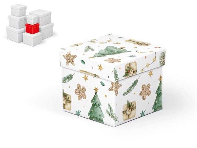 Vánoční dárková krabice s motivem vánočního stromku a dárků o rozměrech 10 x 10 x 9 cm Uvedená cena je za 1ks. Při vložení do košíku se automaticky vloží i ostatní krabičky, tak aby jste měli v košíku vždy celý, kompletní set. Materiál: 1,5mm karton, potažené luxusním papírem Set obsahuje tyto krabice. 5370939 Krabice dárková vánoční C-V007-A 8x8x8cm 5370940 Krabice dárková vánoční C-V007-B 10x10x9cm 5370941 Krabice dárková vánoční C-V007-C 12x12x10cm 5370942 Krabice dárková vánoční C-V007-D 14x14x11cm 5370943 Krabice dárková vánoční C-V007-E 16x16x12cm 5370944 Krabice dárková vánoční C-V007-F 18x18x13cm 5370945 Krabice dárková vánoční C-V007-G 20x20x14cm 5370946 Krabice dárková vánoční C-V007-H 22x22x15cm