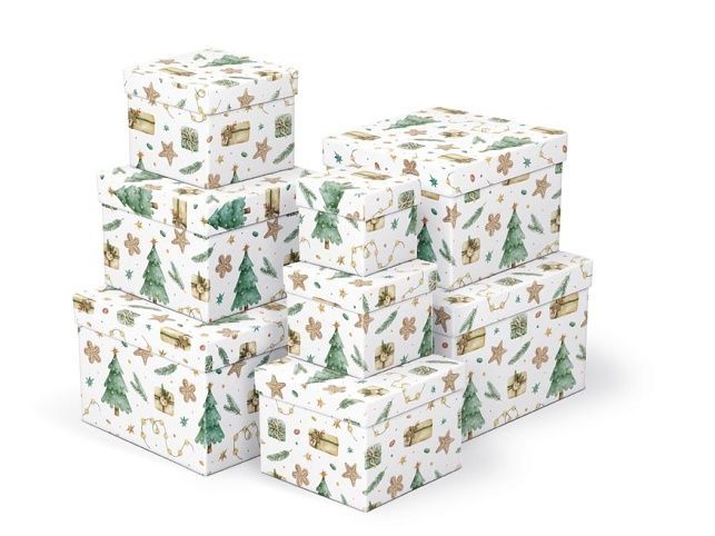Vánoční dárková krabice s motivem vánočního stromku a dárků o rozměrech 22 x 22 x 15 cm Uvedená cena je za 1ks. Při vložení do košíku se automaticky vloží i ostatní krabičky, tak aby jste měli v košíku vždy celý, kompletní set. Materiál: 1,5mm karton, potažené luxusním papírem Set obsahuje tyto krabice. 5370939 Krabice dárková vánoční C-V007-A 8x8x8cm 5370940 Krabice dárková vánoční C-V007-B 10x10x9cm 5370941 Krabice dárková vánoční C-V007-C 12x12x10cm 5370942 Krabice dárková vánoční C-V007-D 14x14x11cm 5370943 Krabice dárková vánoční C-V007-E 16x16x12cm 5370944 Krabice dárková vánoční C-V007-F 18x18x13cm 5370945 Krabice dárková vánoční C-V007-G 20x20x14cm 5370946 Krabice dárková vánoční C-V007-H 22x22x15cm