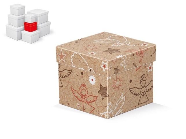 Vánoční, dárková krabice o rozměrech 10 x 10 x 9 cm Dárková krabice s mixem vánočních motivů - hvězdy, andílci. Při vložení do košíku se automaticky vloží i ostatní krabičky, tak aby jste měli v košíku vždy celý, kompletní set. Uvedená cena je za 1 ks. Materiál: 1,5 mm karton, potažený papírem s potiskem Set obsahuje tyto krabice: 5371046 Krabice dárková C-V008-A 8x8x8 cm 5371047 Krabice dárková C-V008-B 10x10x9 cm 5371048 Krabice dárková C-V008-C 12x12x10 cm 5371049 Krabice dárková C-V008-D 14x14x11 cm 5371050 Krabice dárková C-V008-E 16x16x12 cm 5371051 Krabice dárková C-V008-F 18x18x13 cm 5371052 Krabice dárková C-V008-G 20x20x14 cm 5371053 Krabice dárková C-V008-H 22x22x15 cm