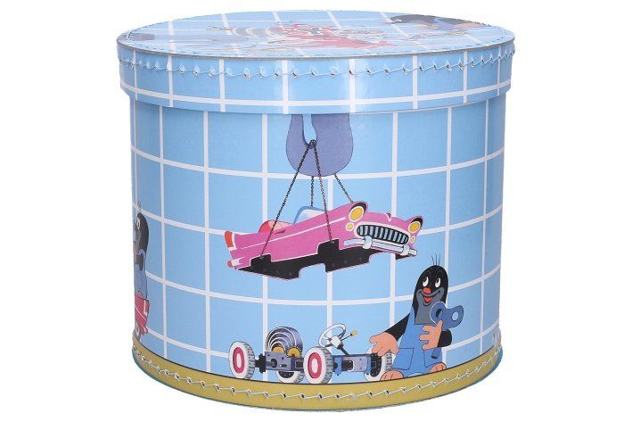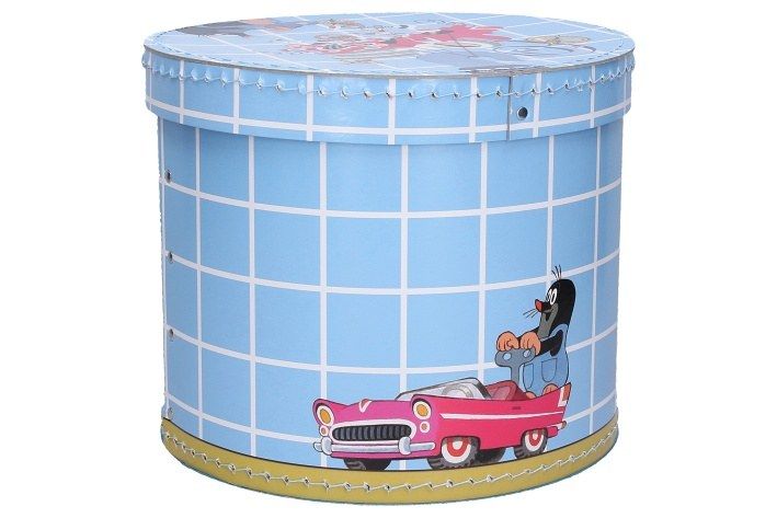 Krabice kulatá Krtek. Rozměry 25x25x21 cm.