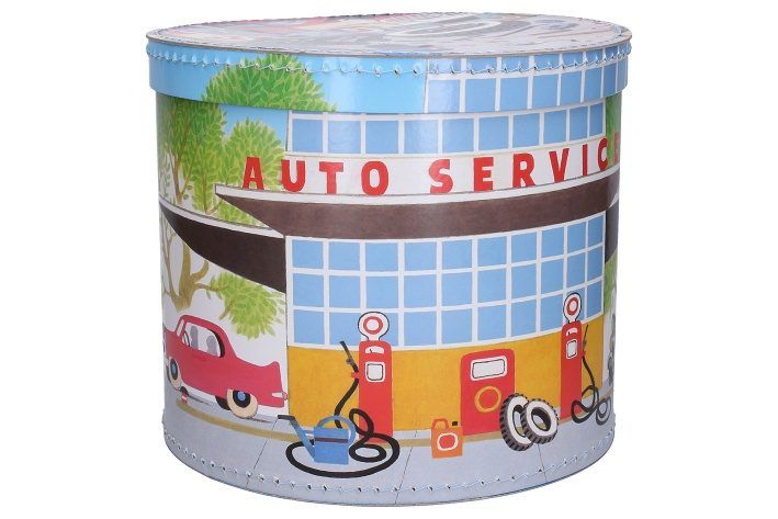Krabice kulatá Krtek. Rozměry 30x30x26 cm.