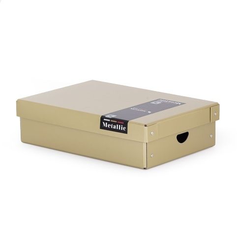 Lamino krabice s víkem a výřezem na úchytky pro snadnější manipulaci. Vhodná k uchování různých předmětů od dokumentů až po hračky.
