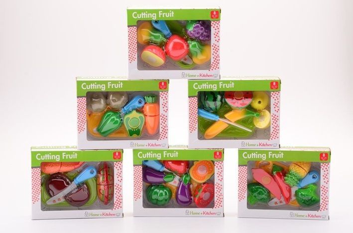 Hračka obsahuje plastové napodobeniny různého ovoce a zeleniny.Jednotlivé dílky lze spojit magnetem a poté je možné jednoduše„krájet“ přiloženým plastovým nožem. Sada obsahuje 10 ks.