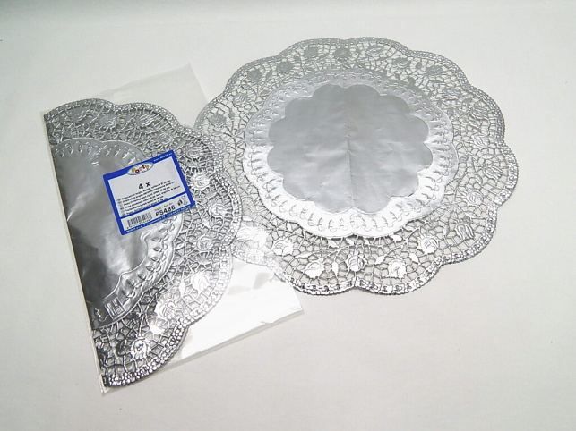 Krajka 65486 dekorativní kulatá 36cm, stříbrná / 4ks/