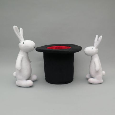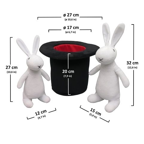 Králíci Bob a Bobek i s kloboukem kouzelníka Pokustóna. 3dílná sada textilních postaviček z příjemně měkoučkého materiálu. Bob 32cm, Bobek 27cm a klobouk 20cm. Vyrobeno v ČR.