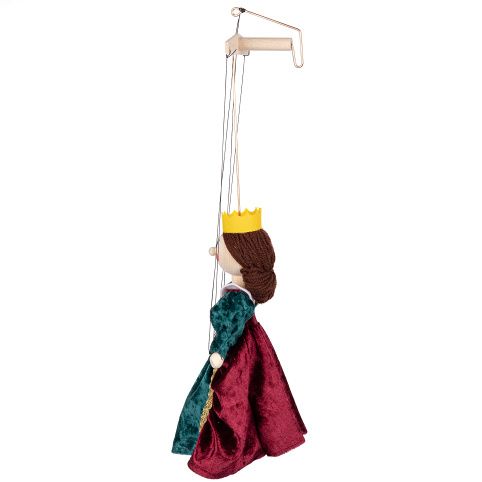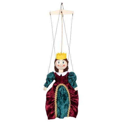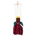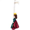 Dřevěná loutka s jednoduchým vodícím křížem, umožňujícím snadné ovládání pro děti i dospělé.