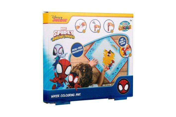 Kreativní podložka na vodní malování s oblíbeným hrdinou Spidey. Děti mohou pomocí speciálního vodního pera vybarvovat obrázky na podložce – po zaschnutí voda zmizí a mohou začít znovu.Opakovaně použitelná – žádné barvy ani nepořádek,snadno přenosná, vhodná na doma i na cesty.