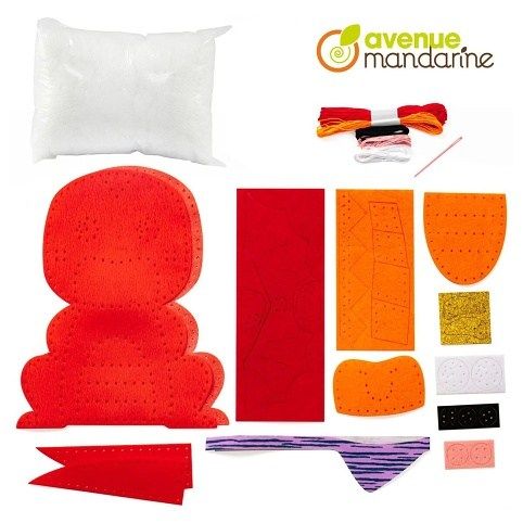 Kreativní sada Avenue Mandarine Dětské šití z kolekce Couz'IN, která umožňuje dětem objevení světa šití. Předem nastříhané kusy měkké barevné plsti s malými otvory usnadňují dětem použití jehly.