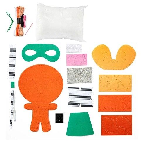 Kreativní sada Avenue Mandarine Dětské šití z kolekce Couz'IN, která umožňuje dětem objevení světa šití. Předem nastříhané kusy měkké barevné plsti s malými otvory usnadňují dětem použití jehly.