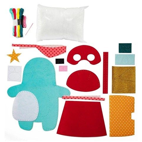 Kreativní sada Avenue Mandarine Dětské šití z kolekce Couz'IN, která umožňuje dětem objevení světa šití. Předem nastříhané kusy měkké barevné plsti s malými otvory usnadňují dětem použití jehly.