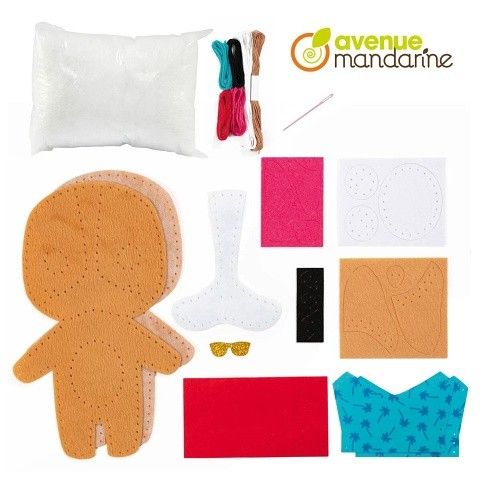 Kreativní sada Avenue Mandarine Dětské šití z kolekce Couz'IN, která umožňuje dětem objevení světa šití. Předem nastříhané kusy měkké barevné plsti s malými otvory usnadňují dětem použití jehly.