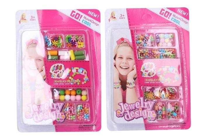 Kreativní sada korálky plast 2 druhy na kartě 18x26x2cm
