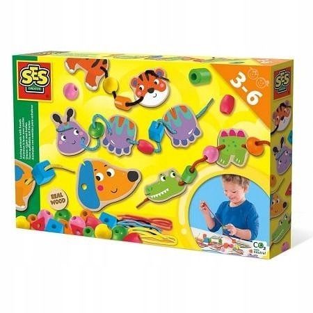 Pomocí této sady se děti učí skládat dlouhá těla zvířat a spojovat jejich části. Zvířata (např. krokodýl) jsou rozdělená na menší dřevěné díly, které je potřeba navléknout dohromady, aby bylo zvíře kompletní – od hlavy až po ocas! Navlékání se provádí pomocí barevných šňůrek a dodaných korálků. Balení obsahuje: Dřevěné díly zvířat: 12 dřevěných dílů zvířat (hlavy, těla, ocasy atd.).Dřevěné korálky: 18 dřevěných korálků.Šňůrky (tkaničky): 4 barevné šňůrky na navlékání.