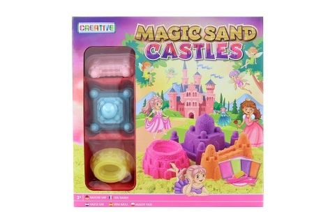 Kreativní sada obsahuje 4 sáčky s barevným pískem (růžová, žlutá, fialová, oranžová) , 3 formičky, váleček a 2 plastové nožíky. Baleno v krabici. Rozměry balení cca 26x26x5,5 cm. Věk 3+