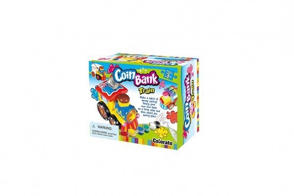 Kreativní sada Pokladnička k vymalování mašinka s doplňky v krabičce 17x14x11cm
