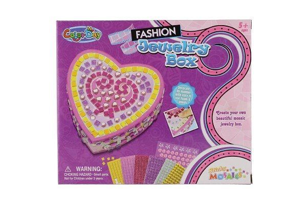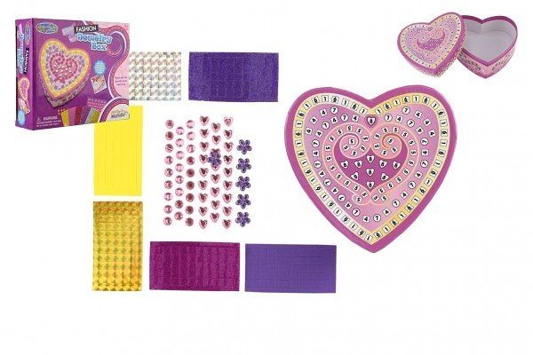 Kreativní sada šperkovnice srdce s mozaikou s doplňky v krabici 22x18x6cm