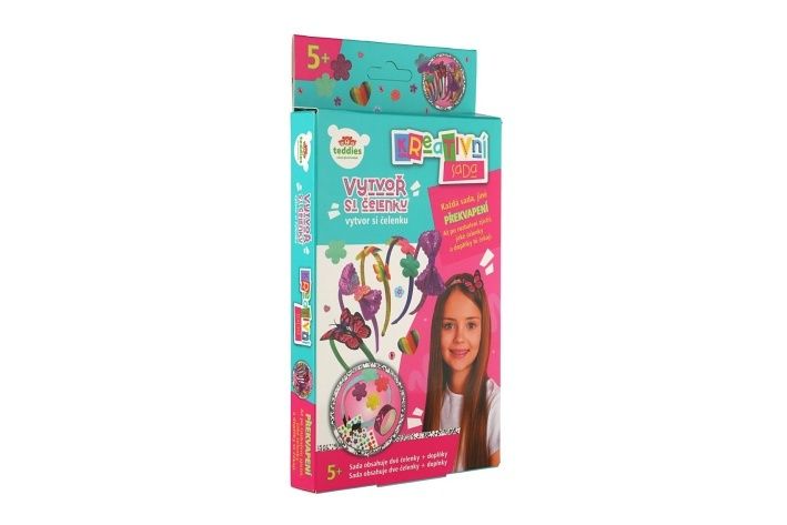 Originální sada, se kterou si děti mohou samy vytvořit krásné a jedinečné čelenky. Každé balení je malé překvapení – po otevření zjistíte, jaké barvy, ozdoby a doplňky uvnitř čekají. Výroba je jednoduchá a zábavná, takže se do ní mohou pustit děti už od 5 let. Obsah balení: 2 základní čelenky k ozdobení a různé dekorace a doplňky. Rozvíjí fantazii, kreativitu a jemnou motoriku. Vhodné jako dárek pro malé tvořivé parádnice.