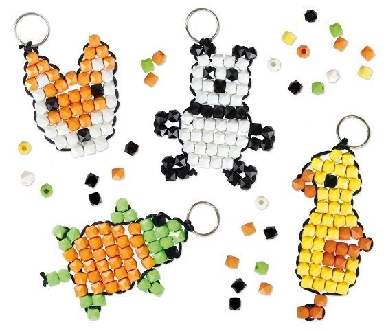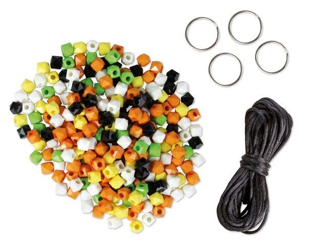 Kompletní sada pro výrobu 4 talismánků. Obsahuje 250 módních barevných korálků, černou šňůrku a 4 kroužky na klíče.