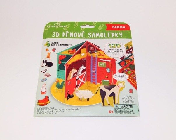 3D pěnové samolepky pro opakované použití. Set krásných samolepek a hrací 3D kartonový domeček s motivem farmy. Samolepky drží na hladké ploše bez lepidla. Lze je tedy opakovaně používat a přelepovat na hrací ploše nebo na různá hladká místa. Děti rozvíjí jemnou motoriku a zároveň si užijí plno zábavy. Skvělá aktivita pro vytváření si vlastního zábavného světa. Balení obsahuje 129 pěnových samolepek pro opakované použit, 3D hrací kartonový domeček (4 pokoje na vyzdobení) a 4 stojící figurky.