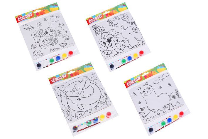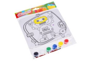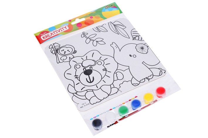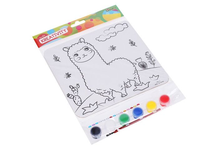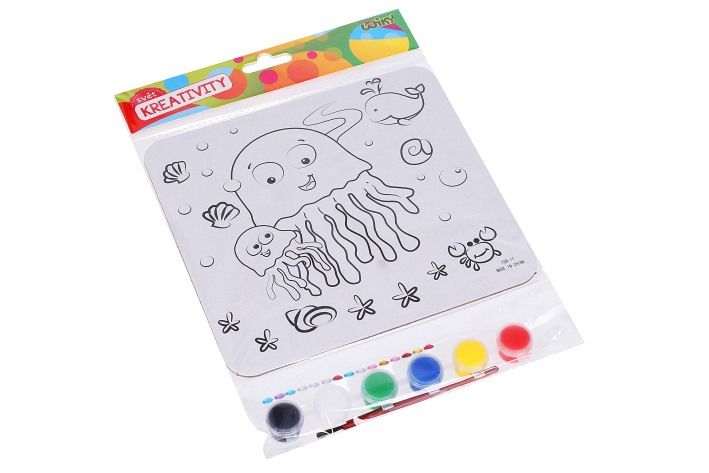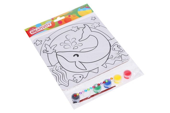 Set obsahuje 1x obrázek na vymalovaní s vlastním stojánkem + 6 druhů barev + štětec + samolepicí kamínky.