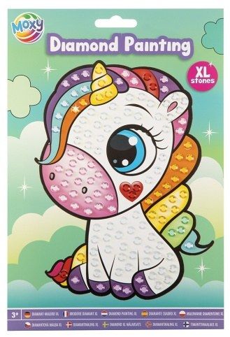 Kreativní set diamantové malování velikosti A5 obsahuje velké XL kameny/drahokamy, předlohu/obrázek, vosk k nalepení kamínků, pero k manipulaci s diamanty a lepení a tácek pro snazší roztřídění a práci. Na předlohu umísti kameny a vznikne nádherný diamantový obrázek jednorožce, který bude zdobit tvůj pokojiček.