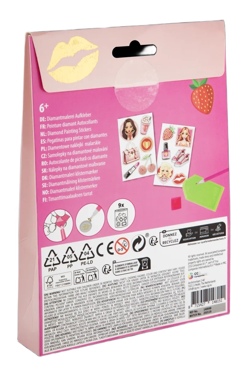 Kreativní set diamantové malování samolepky obsahuje 12 kusů samolepek k vytvoření, kamínky/diamanty, aplikační pero, lepící čtvereček a tácek, 18x13x2,5 cm