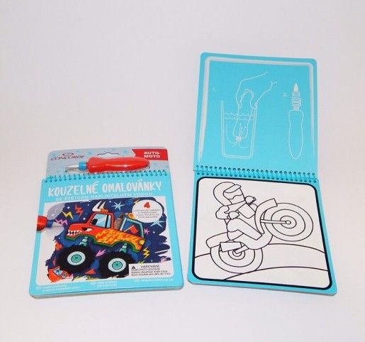 Kouzelné omalovánky disponují čtyřmi obrázky. Štětec se naplní vodou a po rozetření vody na bílou plochu obrázky získají barvu. Po vybarvení se omalovánky nechají uschnout a po úplném uschnutí jsou znovu použitelné. Balení obsahuje: 4 znovupoužitelné obrázkové plochy z tvrdého kartonu a speciální vodou plnitelný štětec.