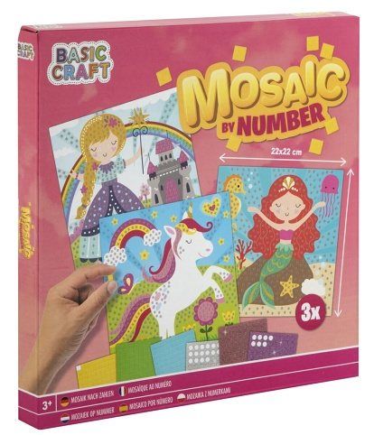 Kreativní set mozaika podle čísel 22x22 cm, nalep správně přiložené samolepící prvky podle čísel a vytvoř si krásný obrázek, sada obsahuje 3 různé obrazy/předlohy