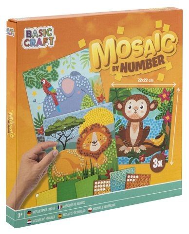 Kreativní set mozaika podle čísel 22x22 cm, nalep správně přiložené samolepící prvky podle čísel a vytvoř si krásný obrázek, sada obsahuje 3 různé obrazy/předlohy