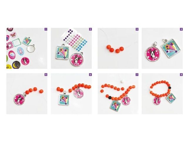 Kreativní set - náramky 5ks BALENÍ OBSAHUJE: 100x korálek 12x rámeček 1x samolepky 12x kroužek 1x šňůrka 1x samolepící kamínky 1x návod k použití VAROVÁNÍ: Nevhodné pro děti do 3 let. Obsahuje malé části, hrozí nebezpečí udušení! Uvedená cena je za 1 ks.
