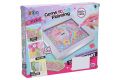Kreativní set obraz s kamínky jednorožec. Velikost 17,5x17,5x1,5cm. Obsahuje misku na kamínky, pero na nabírání a umísťování kamínků, kamínky různých barev, vosk, rámeček. Postup: z obrázku sloupněte folii, špičku přiloženého pera přiložte na vosk, perem naberte kamínek, umístěte ho na obraz.
