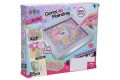 Kreativní set obraz s kamínky lama. Velikost 17,5x17,5x1,5cm. Obsahuje misku na kamínky, pero na nabírání a umísťování kamínků, kamínky různých barev, vosk, rámeček. Postup: z obrázku sloupněte folii, špičku přiloženého pera přiložte na vosk, perem naberte kamínek, umístěte ho na obraz.