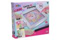 Kreativní set obraz s kamínky panda. Velikost 17,5x17,5x1,5cm. Obsahuje misku na kamínky, pero na nabírání a umísťování kamínků, kamínky různých barev, vosk, rámeček. Postup: z obrázku sloupněte folii, špičku přiloženého pera přiložte na vosk, perem naberte kamínek, umístěte ho na obraz.