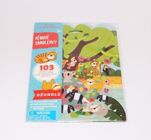 Pěnové samolepky pro opakované použití. Set krásných samolepek s motivem džungle. Samolepky drží na hladké ploše bez lepidla. Lze je tedy opakovaně používat a přelepovat na hrací ploše nebo na různá hladká místa. Děti rozvíjí jemnou motoriku a zároveň si užijí plno zábavy. Skvělá aktivita pro vytváření si vlastního zábavného světa. Balení obsahuje 103 pěnových samolepek pro opakované použití a oboustrannou rozkládací hrací plochu.