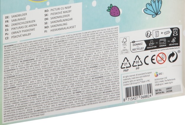 Kreativní set pískové malování obsahuje 4 listy samolepek k vytvoření a 12 písků různých barev. Písek nanesete na lepící prostor a tímto způsobem vytvoříte krásně barevný obrázek. 26x17x2 cm