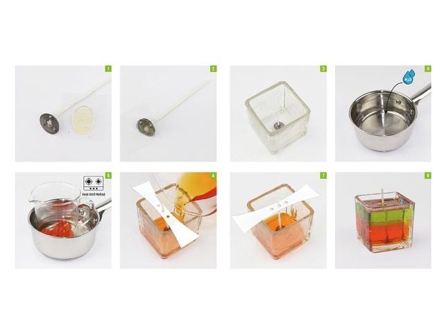 Kreativní set - výroba svíčekBALENÍ OBSAHUJE:- 1 x zelený vosk- 1 x oranžový vosk- 1 x červený vosk- 1 x modrý vosk- 1 x fialový vosk- 1 x žlutý vosk- 3 x skleněná nádoba- 3 x knot- 3 x čtvereček pro uchycení knotu- 1 x pomocník pro umístění knotů- 1 x návod k použitíVAROVÁNÍ: Nevhodné pro děti do 3 let. Obsahuje malé části, hrozí nebezpečí udušení!Uvedená cena je za 1 balení.
