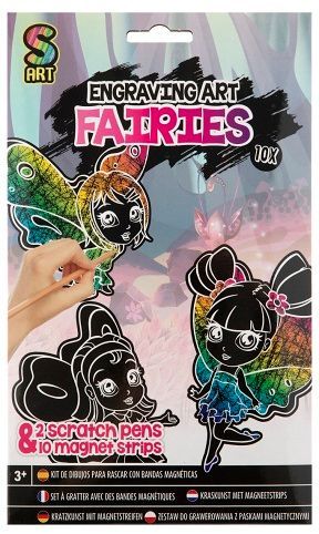 Kreativní set obsahující 10 kusů vyškrabávacích magnetků s motivem Víly a vyškrabávací tužku