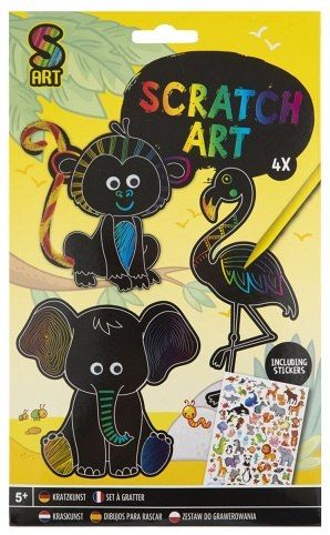 Kreativní set vytvoř si vlastní vyškrabovací zvířátka 4 ks + samolepky