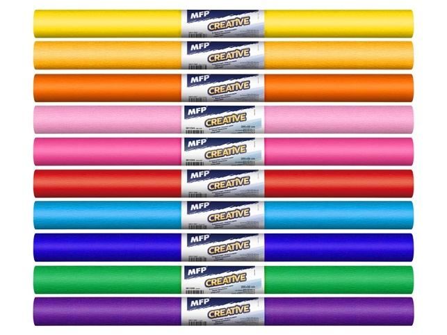 Krepový papír jednobarevný - Nabízíme krepové papíry v různých barvách. Tvoření krepovým papírem je jednoduché a můžete si udělat krásnou výzdobu jak do domu, tak i na různé oslavy či do školních místností. BALENÍ OBSAHUJE: - 10 ks barevných duhových krepových papírů (žlutá, světle oranžová, tmavě oranžová, červená, fialová, tmavě modrá, světle modrá, růžová, zelená, hnědá) - 50 % skrepovanost Uvedená cena je za 1 balení. Podívejte se i na náš návod - jak vyrobit růži z papíru