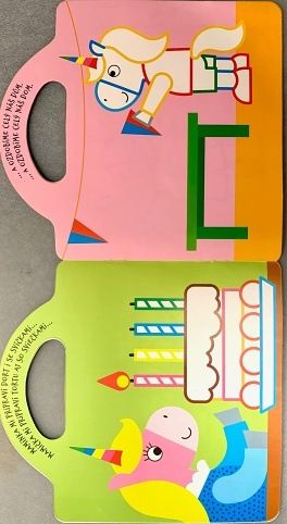 Bezva kniha pro malé tvořivé holky i kluky. Vybarvěte obrázky, ( Podle barev uvedených v obvodu obrázku, nebo podle své fantazie ), snažte se nepřetahovat a dolepte velké samolepky do obrázku a vytvořte si svou vlastní knihu.