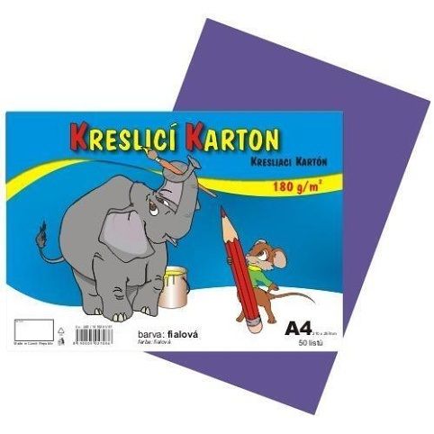 Kreslicí karton barevný A4/50/180g - filaová, STEPA