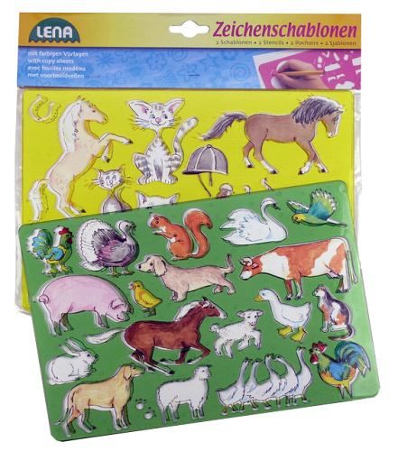 Kreslící šablonys motivem koní a koček. Balení obsahuje 2x šablonu o velikosti 27x23cm.