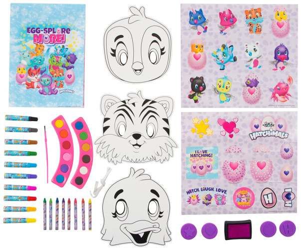 Kreslící sada Hatchimals – balení obsahuje razítka, štětec,
