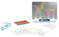 3D tabulka o velikosti 25×5.5×21cm má 4 neonové barvy. Obsah: čistící hadřík, 4 fixy, 6× vzorové obrázky, 1× 3D brýle. 3D efekt díky brýlím. 3D kreslící tabulka – nabízí nejen hodiny zábavy, ale i prostor pro rozvoj dětské fantazie a motorických dovedností. Tabulka inspiruje děti, aby se pustily do tvorby vlastních trojrozměrných uměleckých děl, což rozvíjí jejich kreativní myšlení a inovativní přístup. Stačí namalovat jakýkoliv obrázek na přiloženou destičku a vložit do tzv. čtečky. Na baterie: 4x AA (nejsou součástí balení)