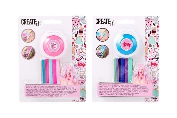 Jsi připravená na novou barvu vlasů? Neboj se, je to jen dočasné! Křídy na vlasy s vlasovými doplňky od Create it! dodají tvému účesu zářivé barvy, které snadno vymyješ umytím vlasů. Stačí křídu nanést a během chvilky získáš nový barevný look.Můžeš si vytvořit vlastní barevný vzor a překvapit kamarádky originálním účesem, který všichni budou obdivovat. Křídy a doplňky jsou k dispozici ve dvou barevných variantách: růžová a modrá. Produkty jsou dermatologicky testované, bez parabenů a nejsou testované na zvířatech, takže jsou bezpečné a vhodné pro dívky ve věku 6–14 let. Balení je vyrobeno ze 100% recyklovatelného PET a FSC certifikovaného papíru a hravý design podporuje kreativitu a sebevyjádření.