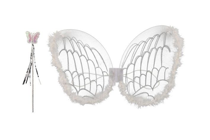 Staňte se andílkem s těmito jemnými křídly! Elegantní karnevalový set obsahuje andělská křídla a sladěnou kouzelnou hůlku, které potěší každou malou vílu nebo anděla. Perfektní doplněk na karneval, focení i pohádkové hry doma.
