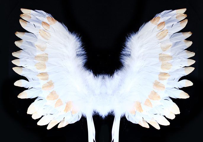 Křídla andělská s peřím, bílo-zlatá