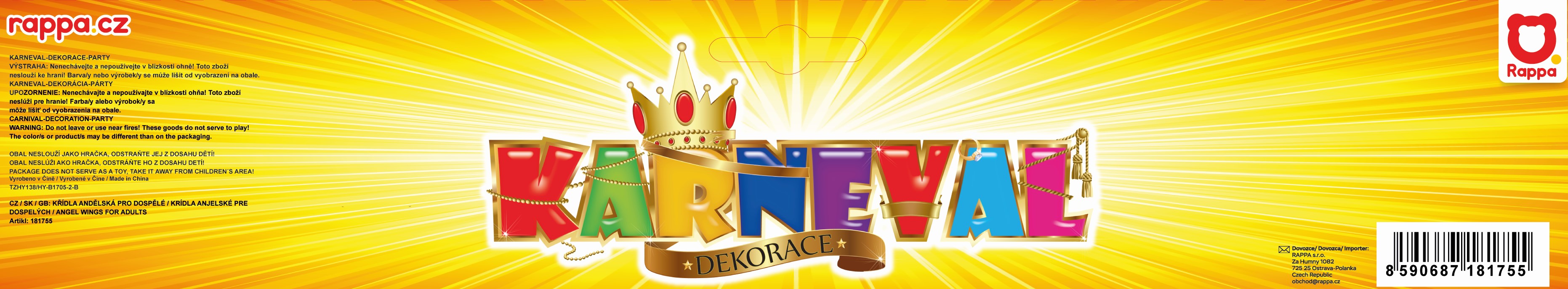 Překrásná křídla pro opravdové anděly ve zlaté barvě! Tento parádní kousek na gumičku je skvělým doplňkem k andělskému kostýmu. Velikost křídel po rozložení je cca 96 cm.