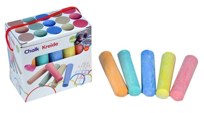 Křídy v krásných pastelových barvách, se kterými se venku nebudeš nikdy nudit! Balení obsahuje 15 kvalitních kulatých kříd s oranžovou, zelenou, modrou, žlutou a červenou barvou. Tak sežeň co nejvíce kamarádů a hurá ven!